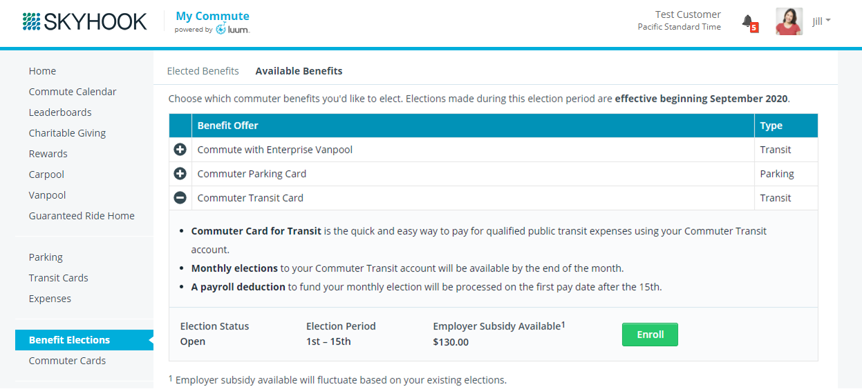 To enroll in the Commuter Transit Card benefit offered by your employer, log into your employer's commute website, then follow the instructions below.