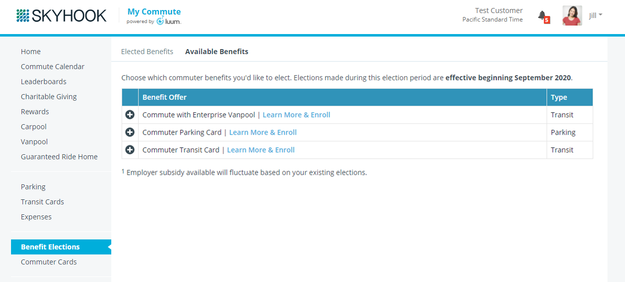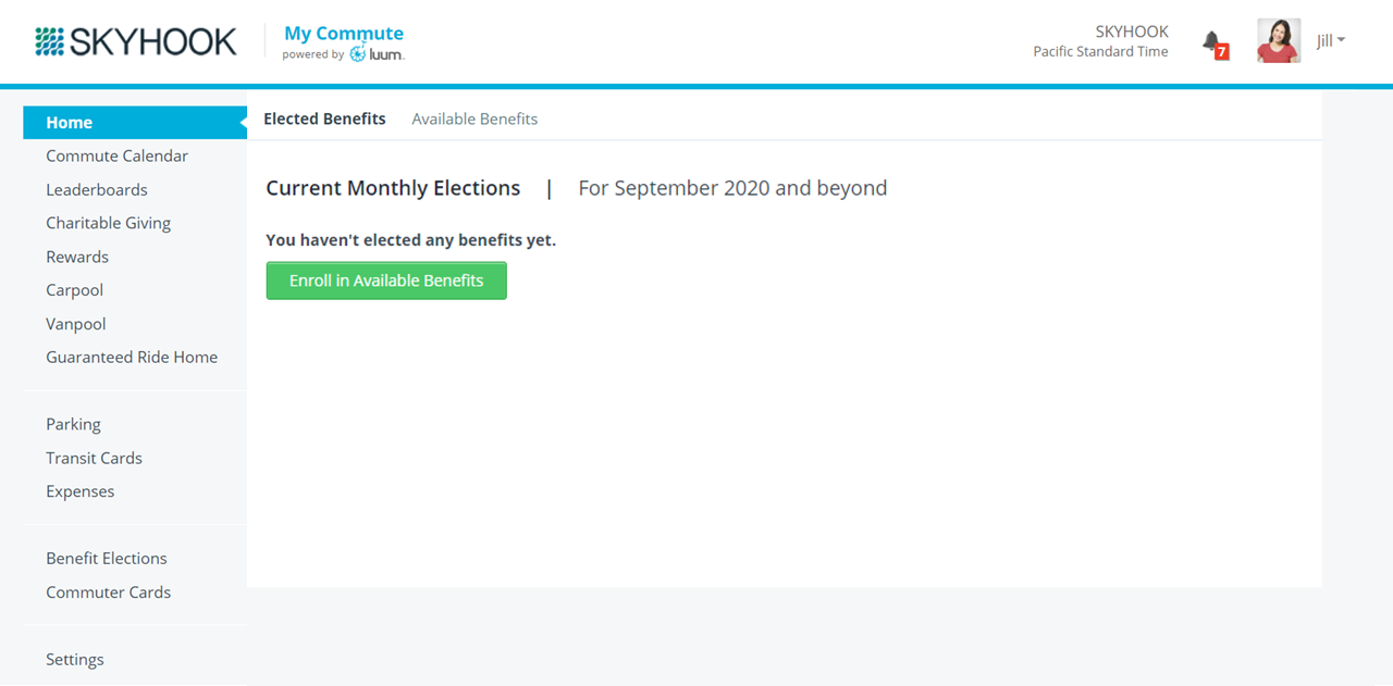 1. Within your employer's commute website, navigate to the Benefit Elections tab in the left hand navigation menu.