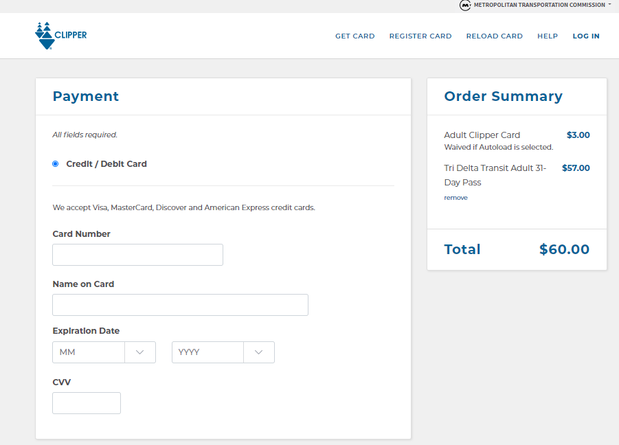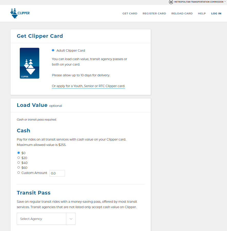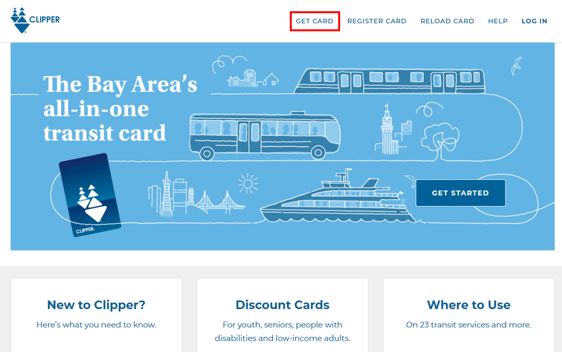 1. Visit https://www.clippercard.com/ClipperWeb/index.do and click Get Card.