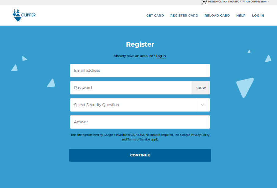 3. Log in to your existing Clipper account, or register for a new account, then click Continue.