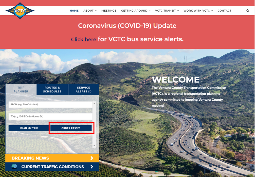 1. Visit https://www.goventura.org/ and click Order Passes.