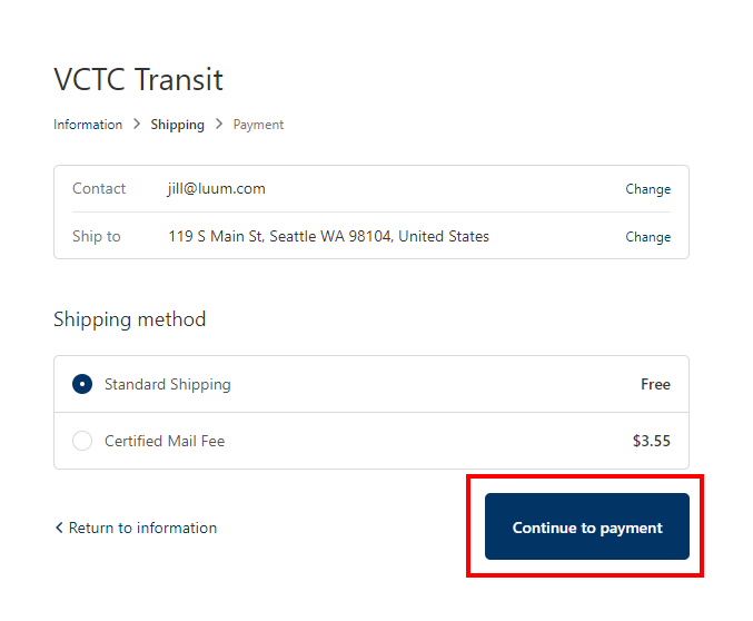 4. Enter your email address and shipping details, then click Continue to Shipping.